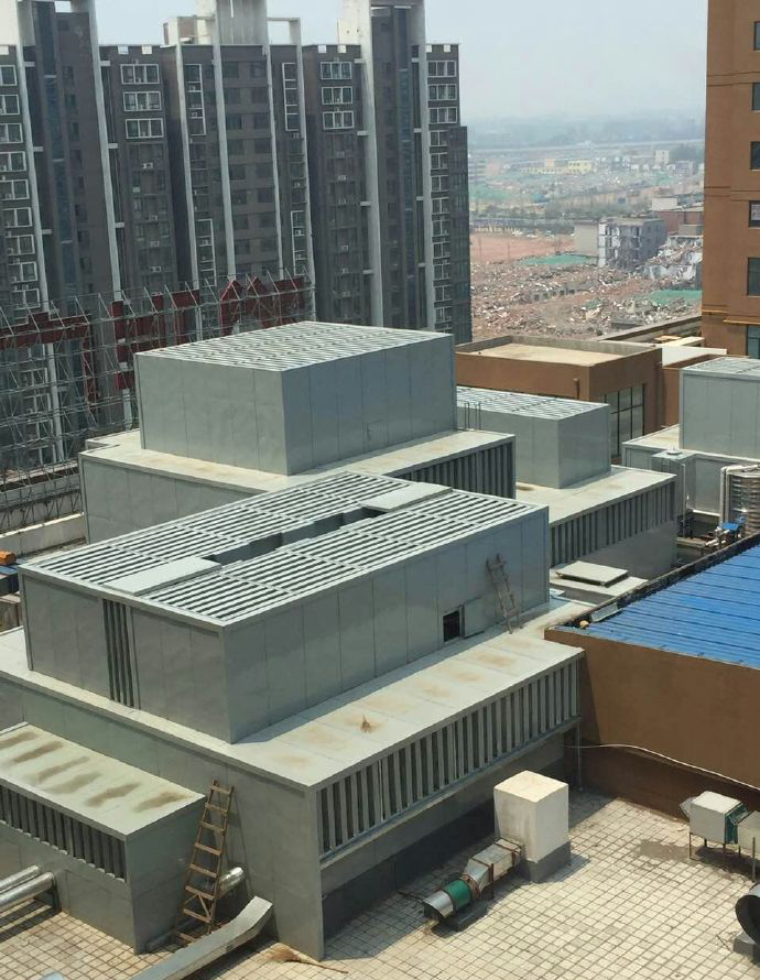 2.降噪的基本原理:聲波在傳播階段遇到障礙物時,會發(fā)生反射、散射和繞射三種狀態(tài)。聲屏障是在聲源和聲音接收點(diǎn)之間添加的裝置。用于隔離和吸收從聲源到聲音接收點(diǎn)的直達(dá)聲波,使部分聲波在遇到障礙物時被反射,部分聲波被吸附減弱,然后被屏幕利用。附加體散射(很小)、屏頂衍射等衰減方式到達(dá)收聲點(diǎn),達(dá)到減輕收聲點(diǎn)噪聲影響的目的,達(dá)到降噪效果。 1、為控制風(fēng)機(jī)低頻噪聲,在排風(fēng)口安裝消聲設(shè)備。消音設(shè)備的選擇非常重要。一般消聲設(shè)備對中低頻噪聲影響不大。電阻消聲設(shè)備具有很好的控制效果,但頻率選擇性很強(qiáng),所以一般選用阻抗復(fù)合消聲設(shè)備。阻抗復(fù)合消聲設(shè)備是指吸聲與反射聲音適當(dāng)結(jié)合的消聲設(shè)備。同時具有電阻式消音器消除中高頻噪聲和電阻式消音器消除低頻中頻噪聲的特點(diǎn),具有寬頻帶消音效果。 2. 在進(jìn)風(fēng)口處安裝消音器或隔音屏障。安裝隔音屏障時,首先要考慮的是隔音屏障與冷卻塔百葉進(jìn)風(fēng)口之間的距離為1m左右,以保證冷卻塔的通風(fēng)進(jìn)風(fēng)口不被堵塞,從而使冷卻塔的實際冷卻效果更強(qiáng)。為了防止噪聲被折射而影響消聲導(dǎo)管的聲學(xué)效果,可在消聲導(dǎo)管附近安裝相應(yīng)長度的聲屏障,以提供輔助降噪作用。冷卻塔噪聲處理相對容易,但在防止散熱性能受損的同時,必須充分考慮隔音管理。消音器和消音百葉雖然可以顯著降低噪音,但必須合理設(shè)計,設(shè)計時必須充分考慮散熱性能和功率。表現(xiàn)。如果結(jié)構(gòu)不合理,就達(dá)不到降噪的目的。如果流阻過大,會損害冷卻塔的運(yùn)行,降低制冷量。不良的功率性能設(shè)計也會增加阻力,從而產(chǎn)生混響噪聲,所以在處理階段必須綜合考慮。 。